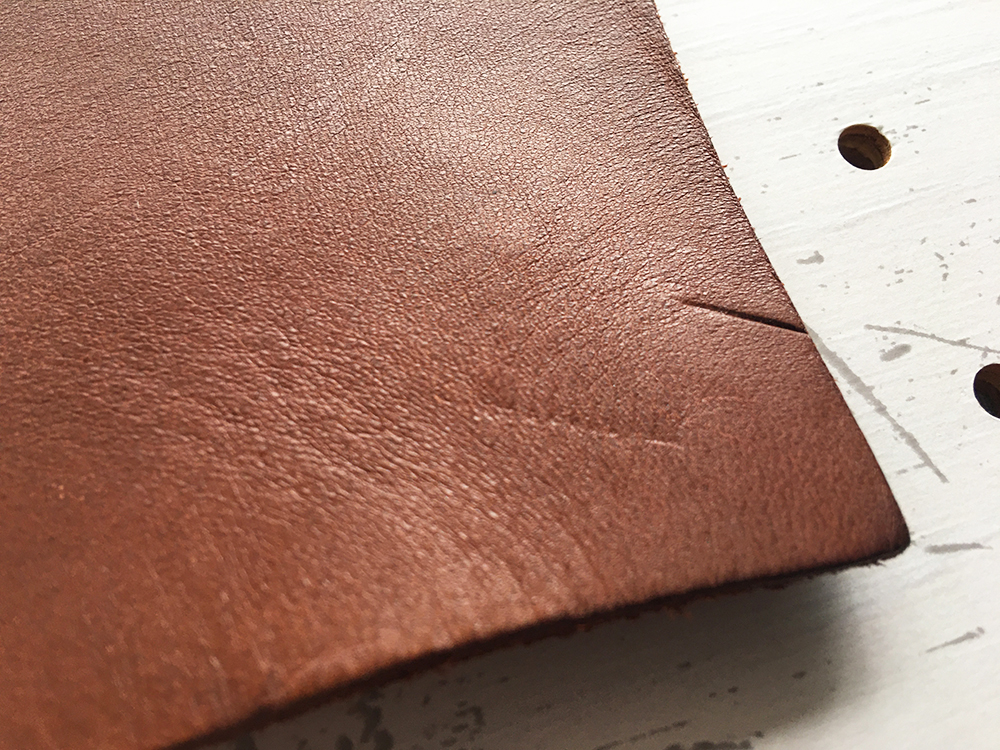 最後にトイアーノ。問屋さんによると革本来の味を活かした正統派イタリアンレザーとのことです。繊維が詰まっていてコシのあるしっかり目の革です。裏面の床面磨きは繊維が詰まっているので非常に上手く仕上がりました。硬めの革で弾力もあるので、小さな財布を作る場合、少しモリっとなりそうな気がします。でも、ベルトやバッグ類には抜群の相性といった感じの素材です。
