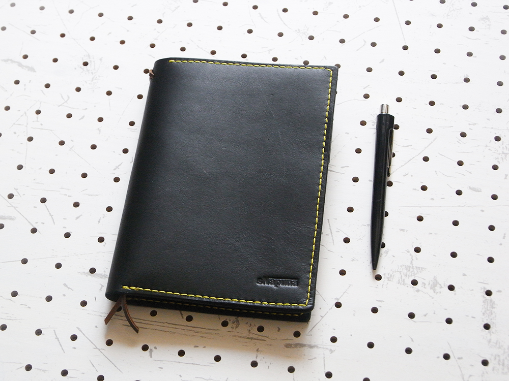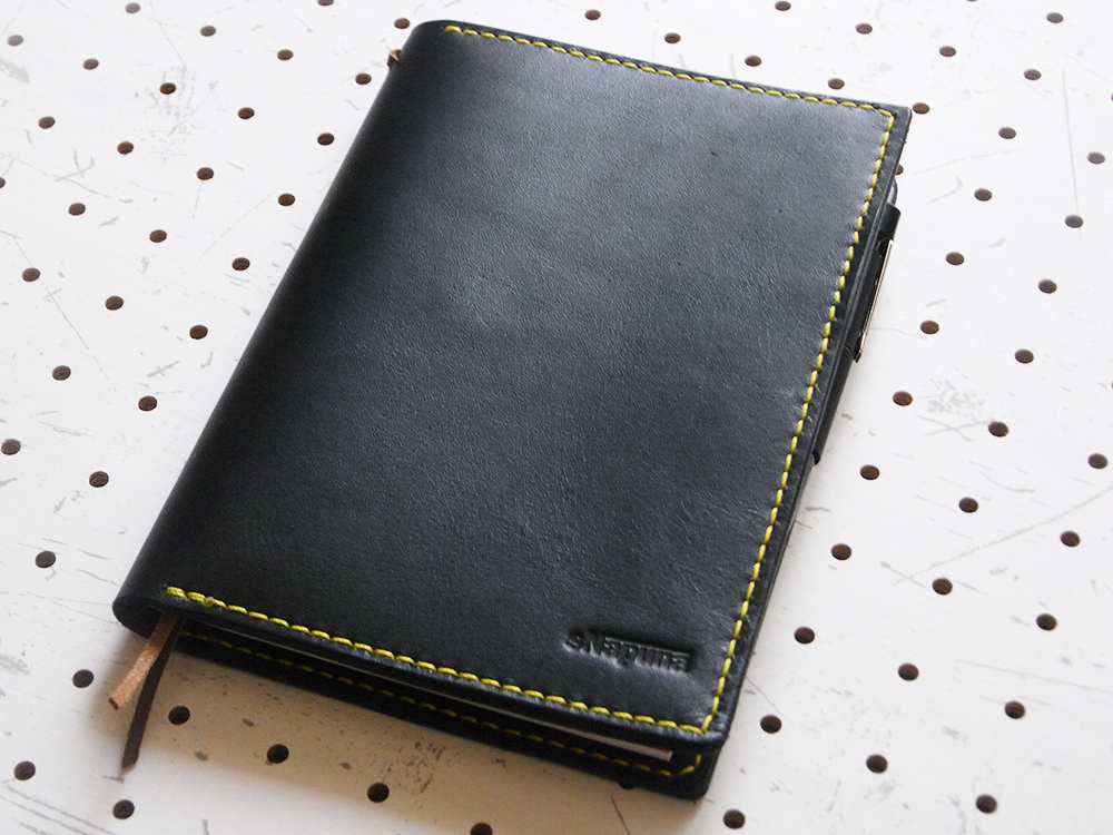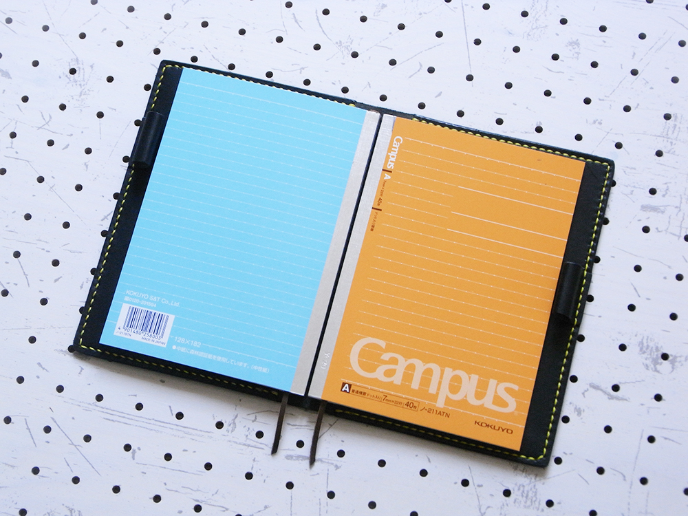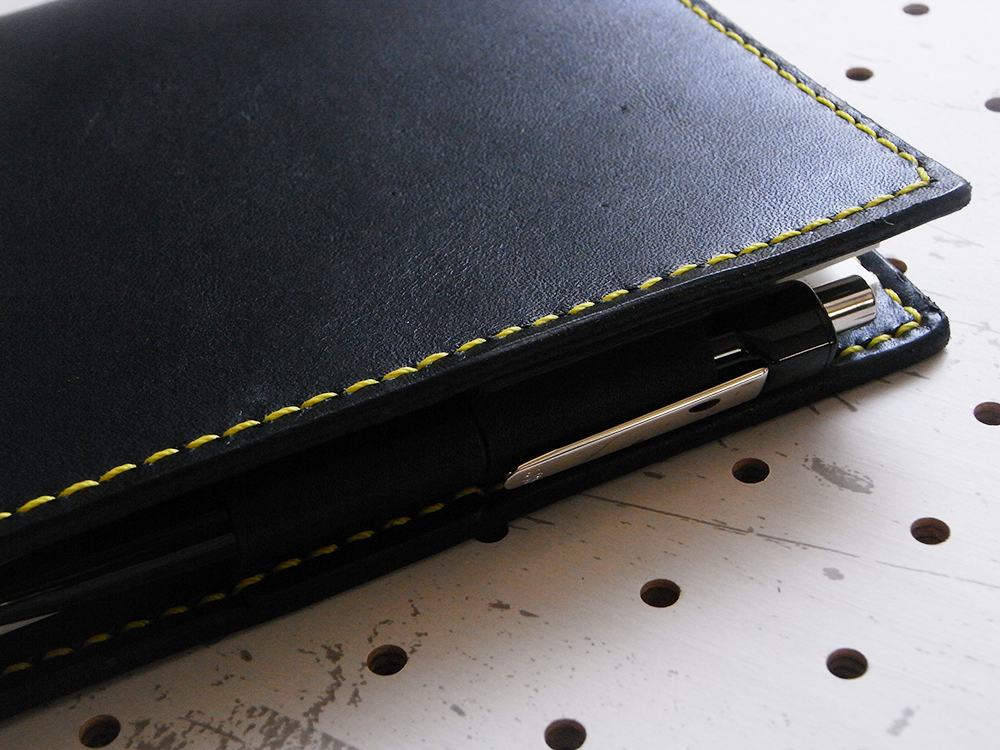 特徴はペンケースです。2か所にペン差しを配置しバタフライストッパーにしています。