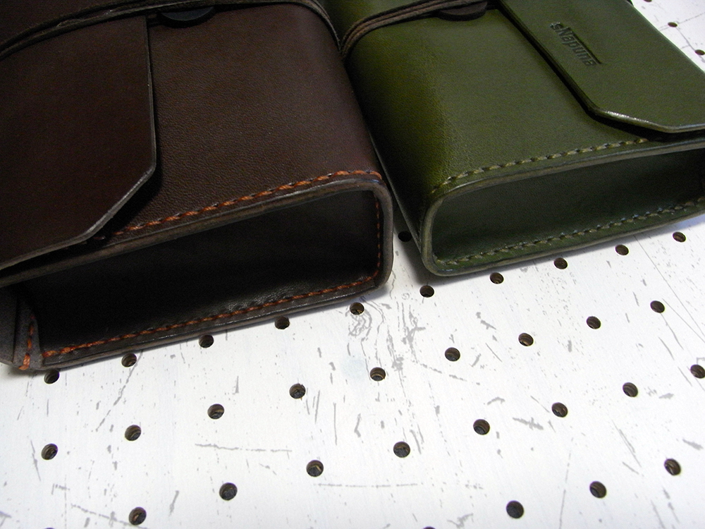 sNapunaの革製品は、断裁から穴あけ、縫いまで、全て手作業で製作していますので、作業中に仕方なくつくシワや小傷が入ることがございます。