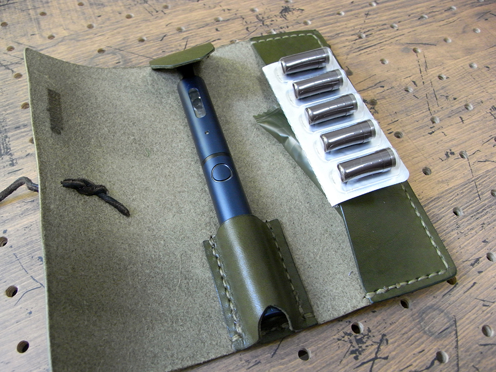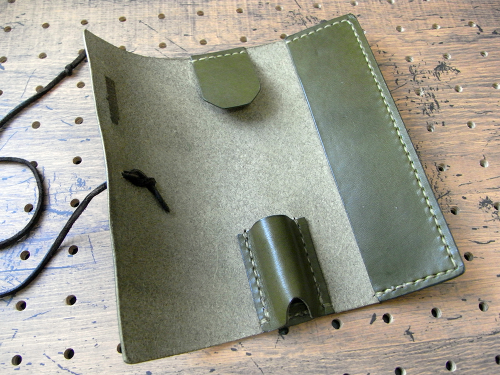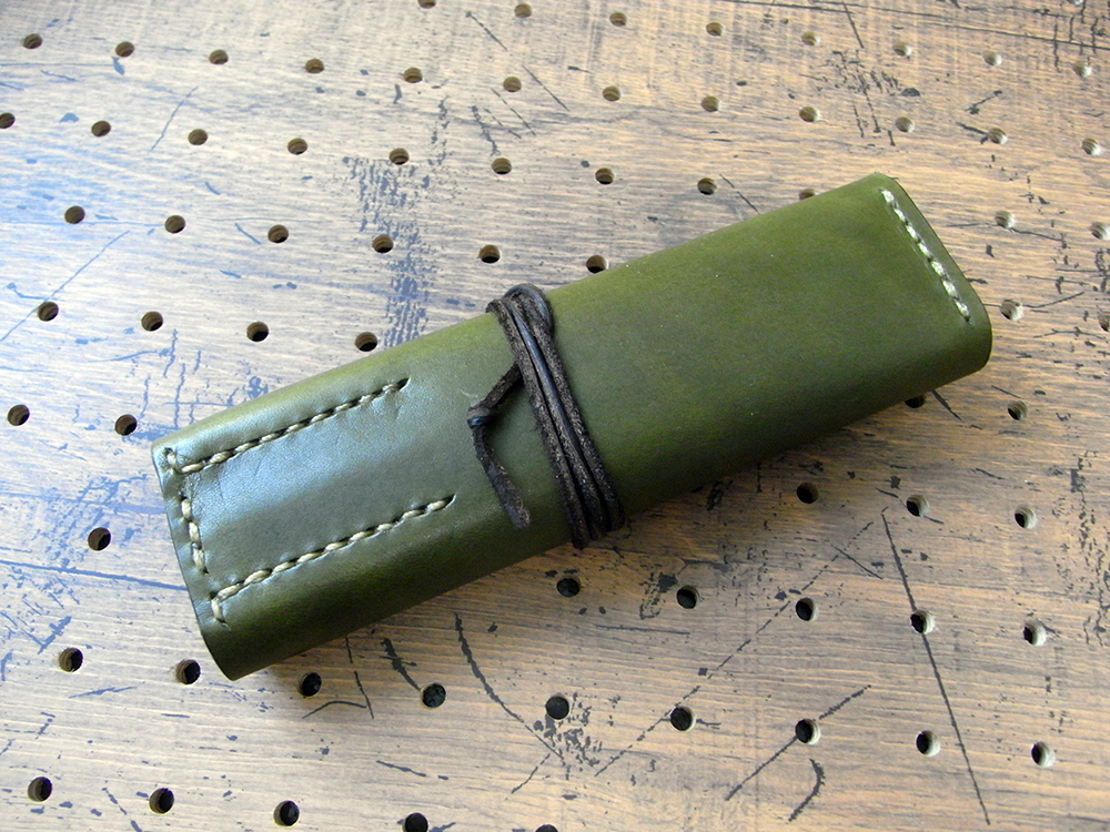 革紐でクルッとまいて留めるシンプルな仕様です。