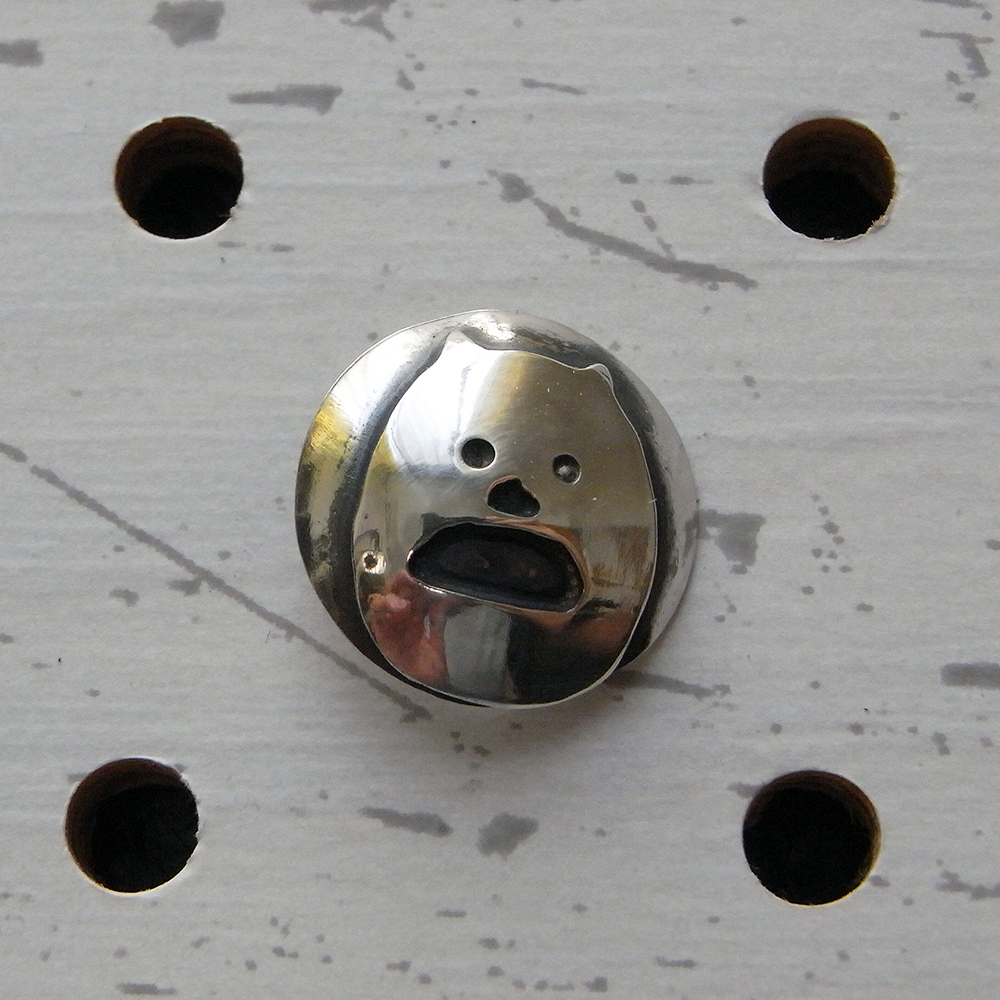シーサープレーンコンチョです。 スナプナのオリジナルになります。 シーサーコンチョの枠無しデザインです。 オーバーレイ技法という銀板を重ね合わせ、溶接で張り付ける方法で制作しています。 一つ一つ手作業で作成しているので、作るたびに微妙に表情が違います。 また、非常に手間がかかっている商品で、切り出し、溶接、研磨で一つの商品で数時間かけています。 当店の革ボタンで留めている商品には全て対応しますので、是非イメチェンに使ってやってください! 商品画像にイノウォレットへ取付サンプルを掲載しましたので、ご覧ください。   ※閲覧の環境により画像の色が異なる場合がありますのでご容赦ください。 ※当店商品全ては手作業で製作している為、同じ製品でもデザインやサイズが若干違います。 ※手作業で製作しているため、製造時の磨きキズ、黒ずみ等が若干ある場合がございますが、商品には全く問題はありません。