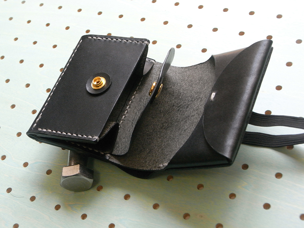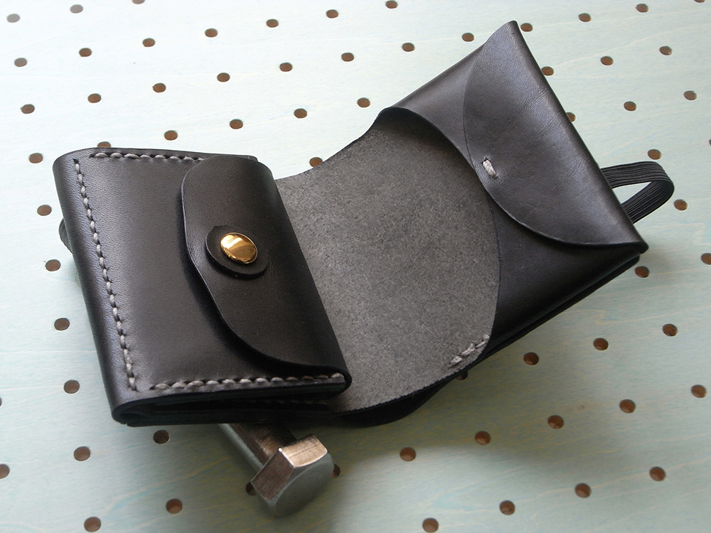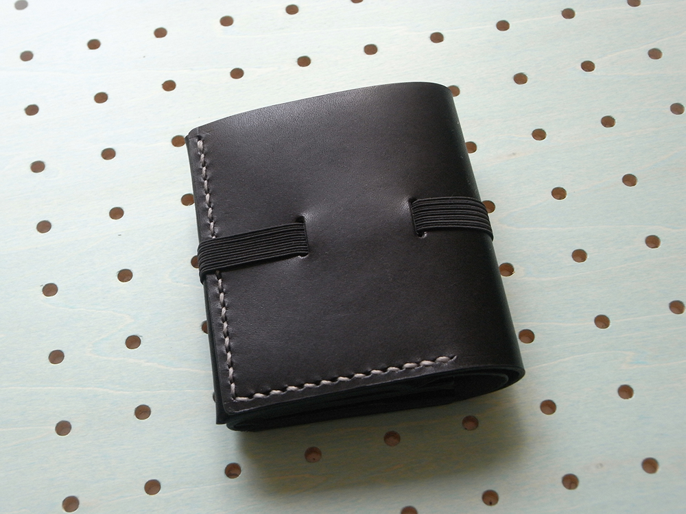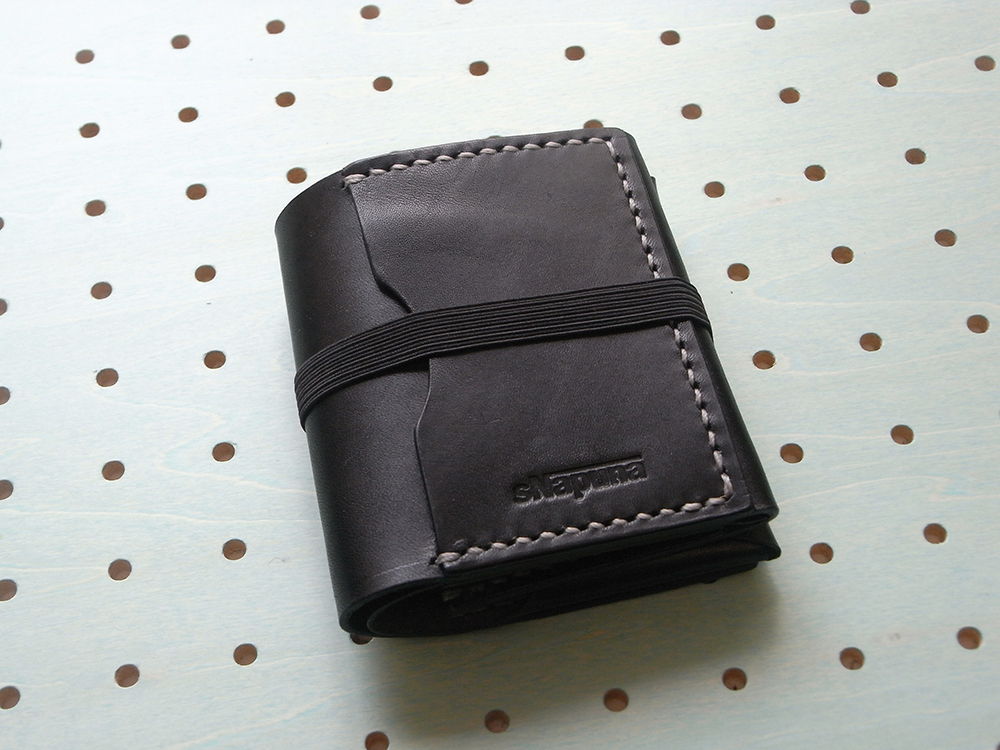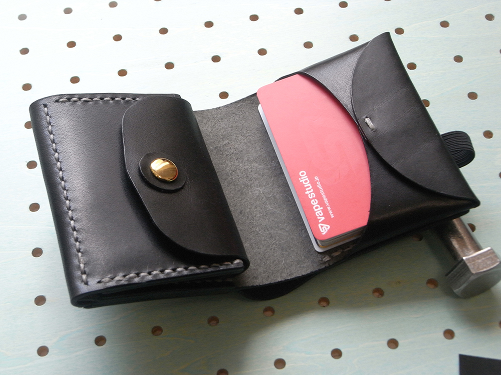 財布全体はゴムバンドを使用しています。これは収納量に応じて「ピシッ!」と閉じるように考えてです。